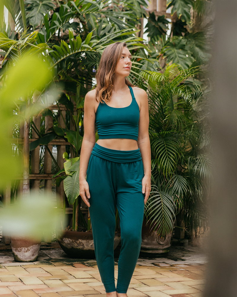 Every piece of IMBŌDHI clothing uses plant-based fabrics that require zero pesticides and only one-fifth the amount of land as cotton. Fast-growing eucalyptus trees are sustainably harvested to make the Lenzing TENCEL™ in our collection. And the silky, fine-knit Lenzing MicroModal™ is made from sustainably-harvested beech tree pulp.