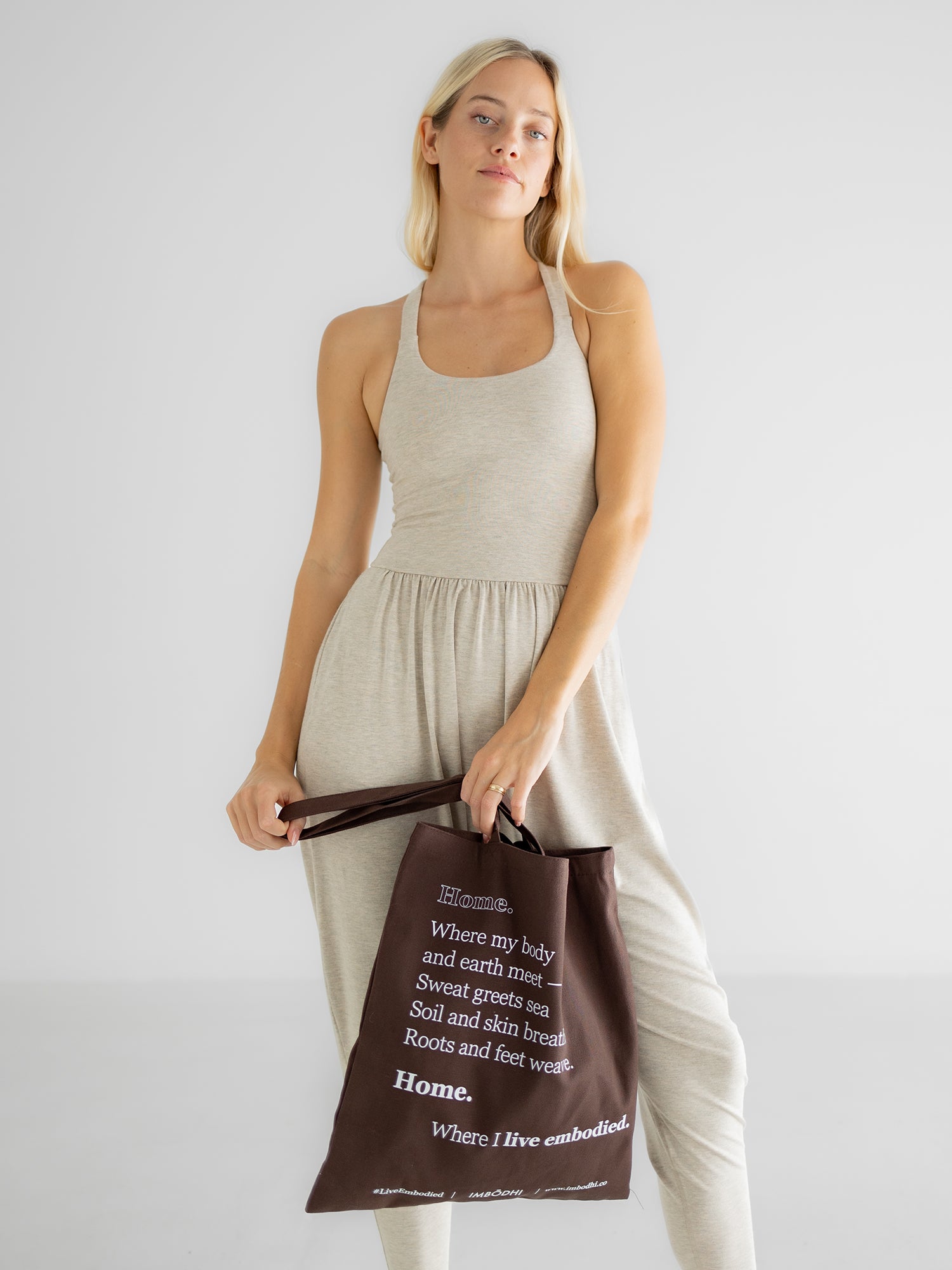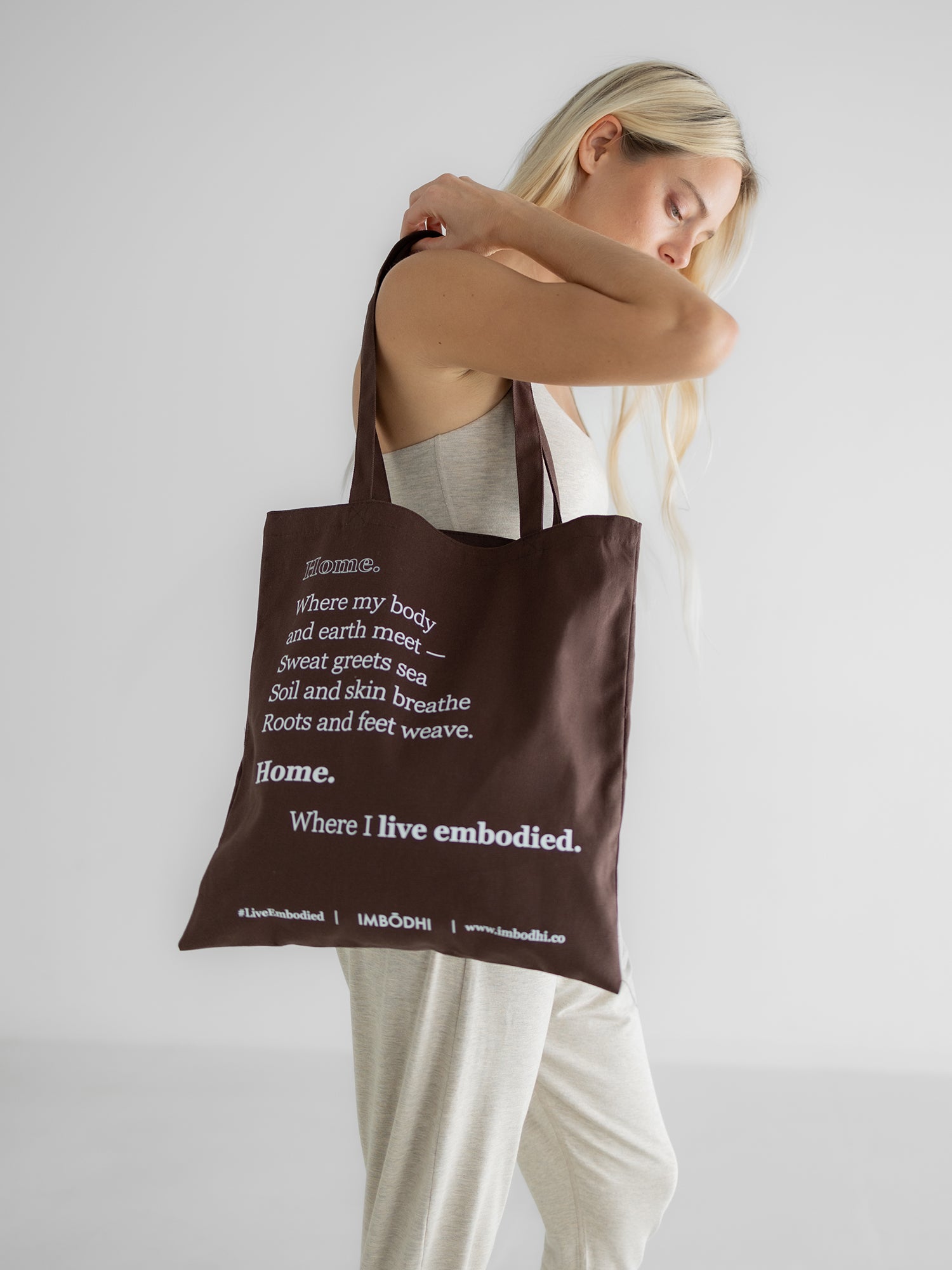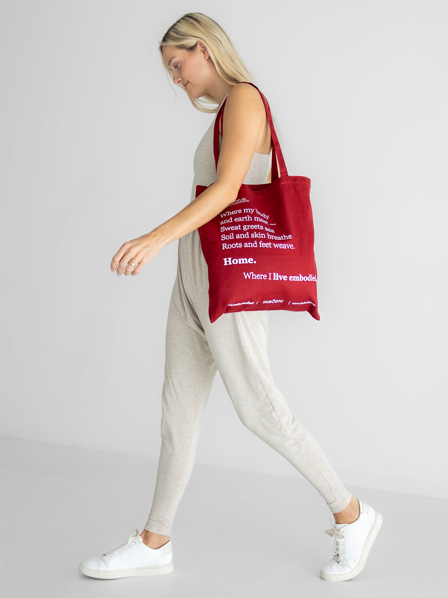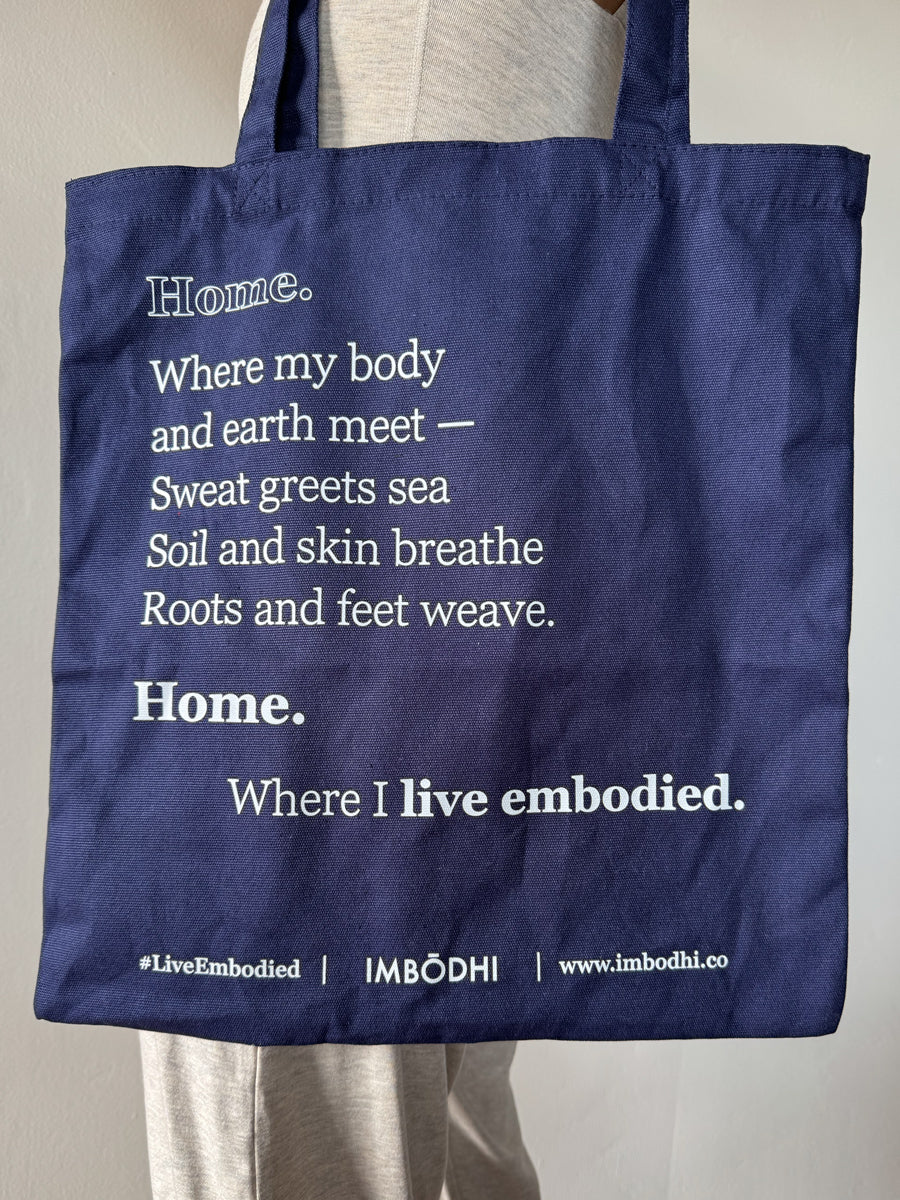 I use it for the farmer's market. It came free with a certain $$$ of purchase and I wasn't expecting much, but I was blown away by the strength and quality of the straps/fabric. Love it and have already gotten to talk about imbodhi when people ask about it.