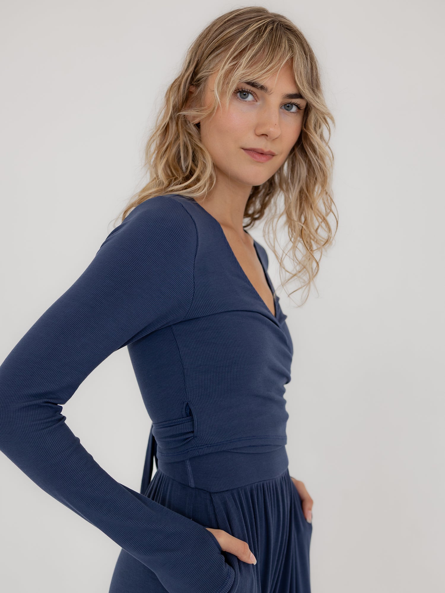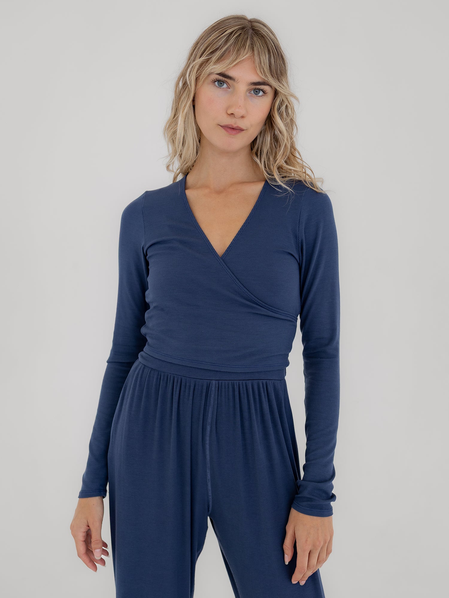 Mila Wrap Top, Ribbed Indigo