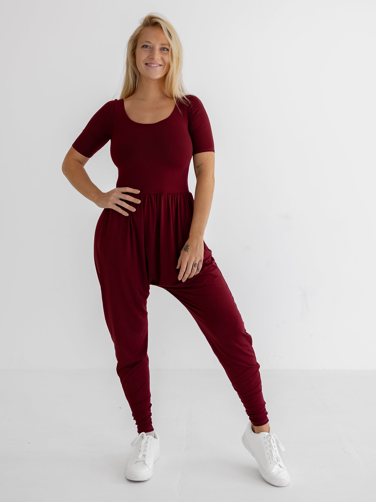 I practically have lived in them the past few years. Just added burgundy to the collection and the material is so comfy and snug at the same time, the pants are flowy and wide, and the top holds everything in place. Couldn’t recommend these more!