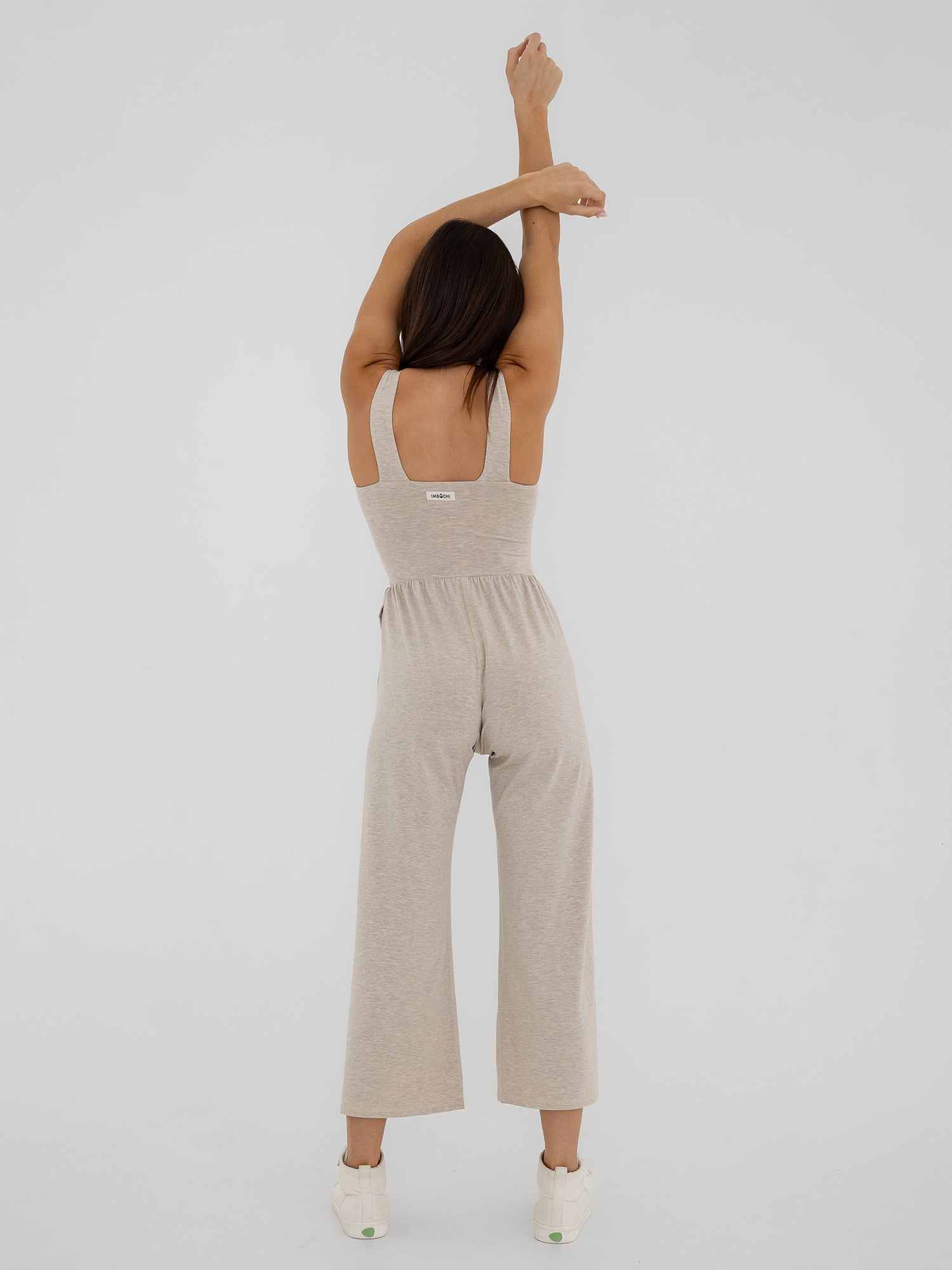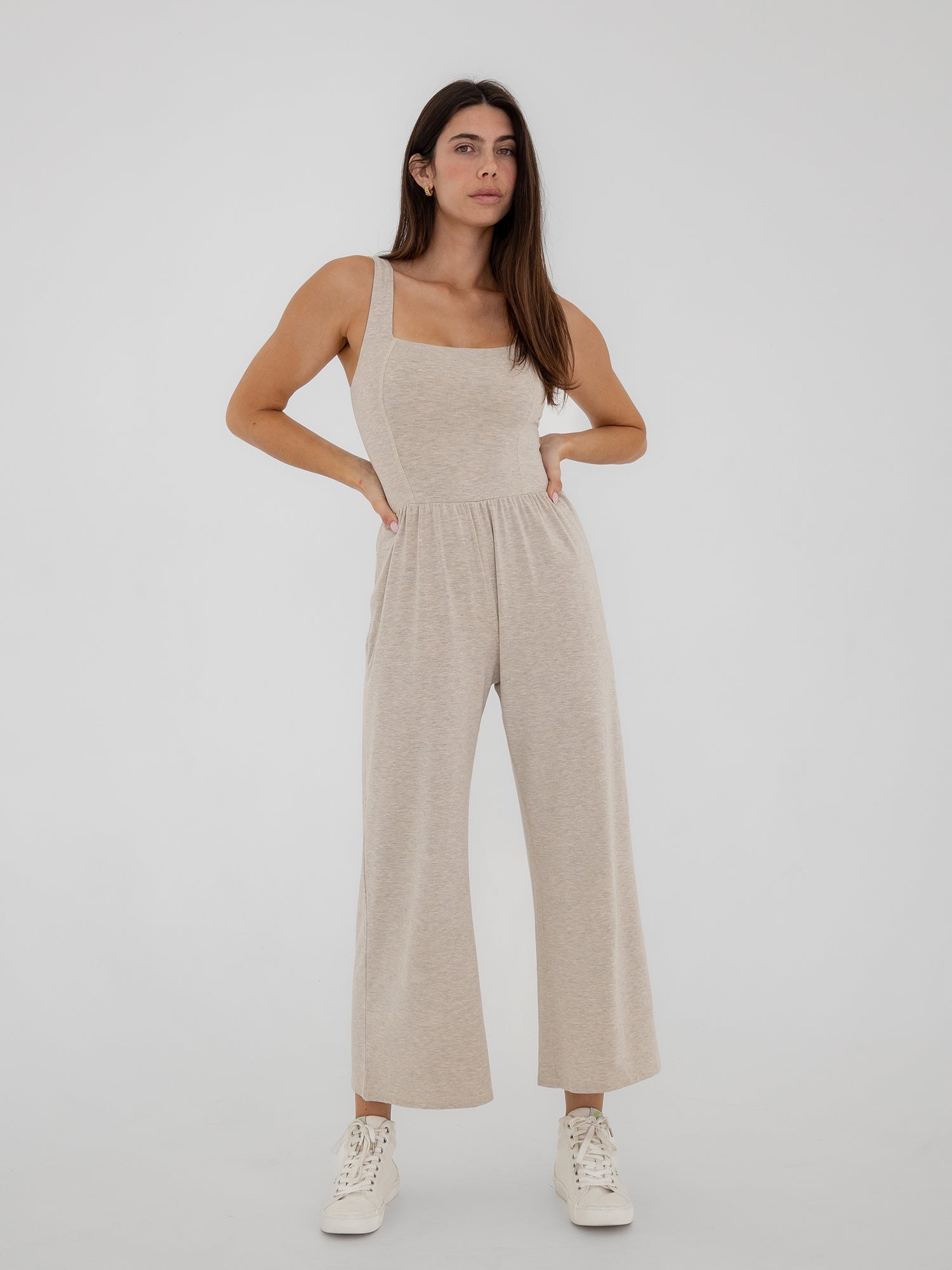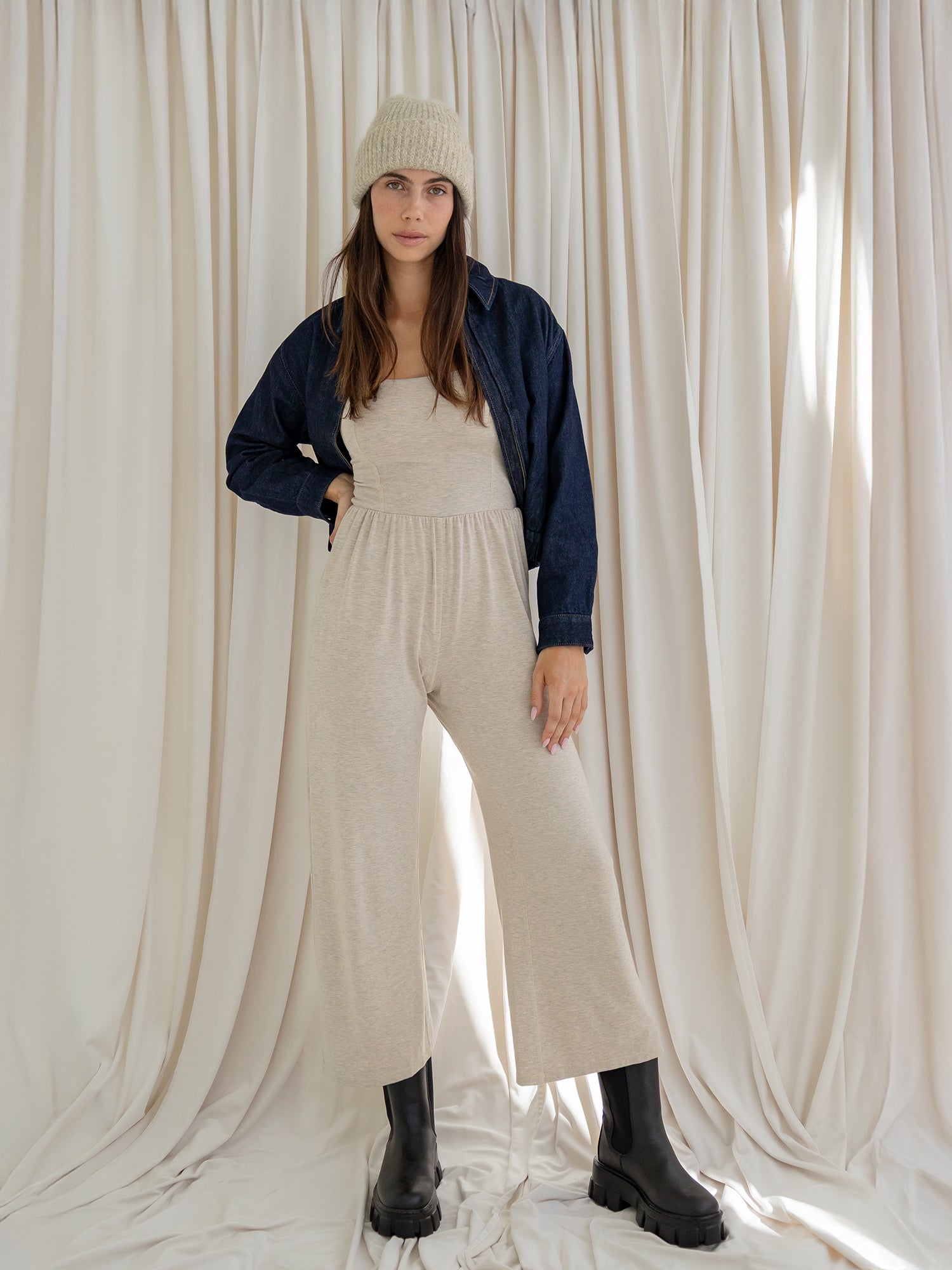 A jumpsuit that blends elegance and function. With a square neckline, princess seams, breezy flare pants, and velvety-soft plant-based fabric, it's made for dancing, dressing up, and everything in between.