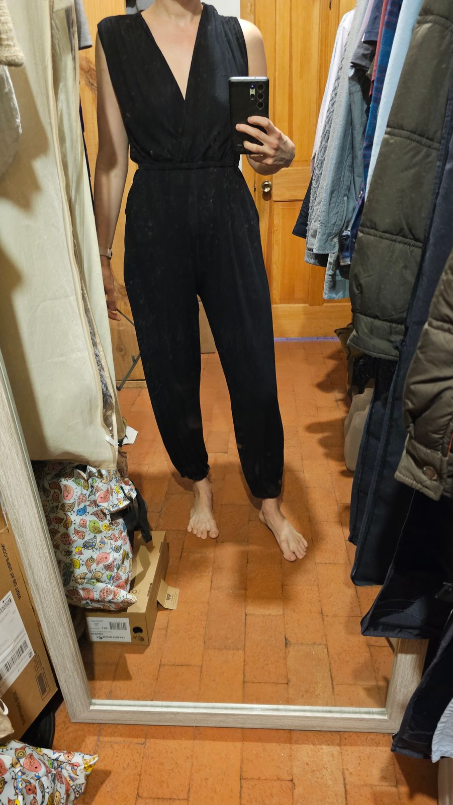 I normally go for the sleeved jumpsuits, but got this on a whim and wow I’m glad I did. When it’s worn with a cardigan (short or long), the look is surprisingly chic and elegant. I wore it to a work event and fit right into the business casual style.