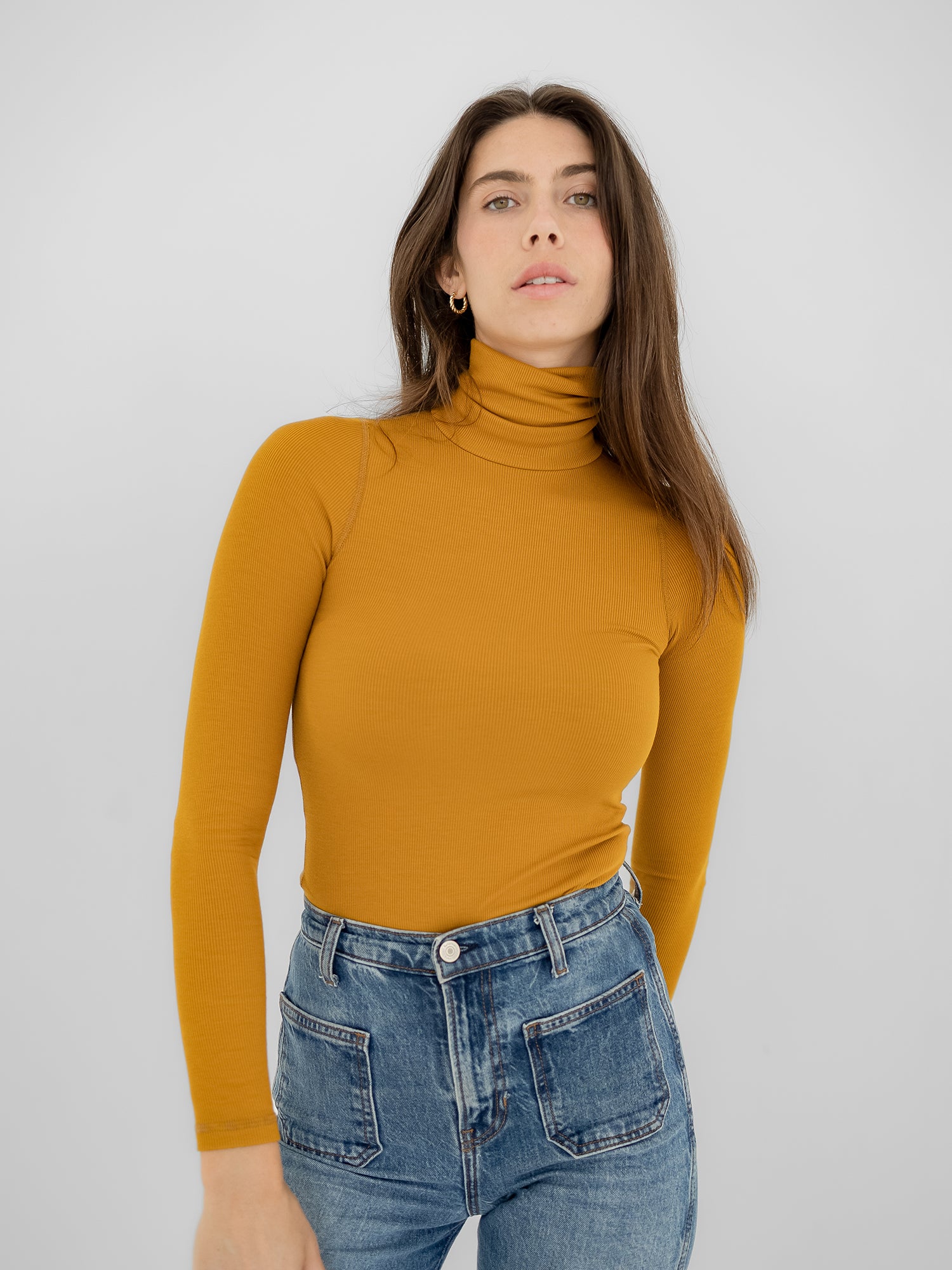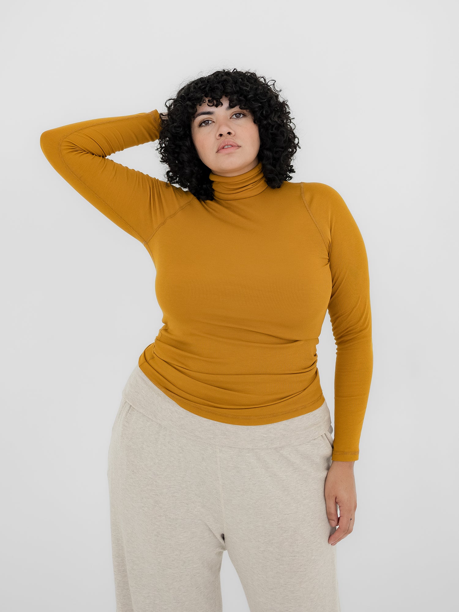 The turtleneck that layers like a dream. Sleek, compressive, and ultra-soft in plant-based ribbed fabric. Perfect for cooler days and pairs effortlessly with everything.